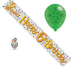 Age 6 Girl Birthday Party Pack - 6th Banner, Balloons, Number Candle