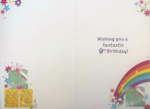 & inside is printed with the same design and reads: Wishing you a fantastic 9th Birthday!