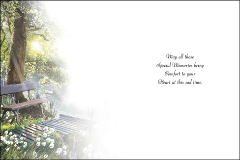 & inside has an insert printed with the same design and reads: May all those Special Memories bring comfort to your Heart at this sad time