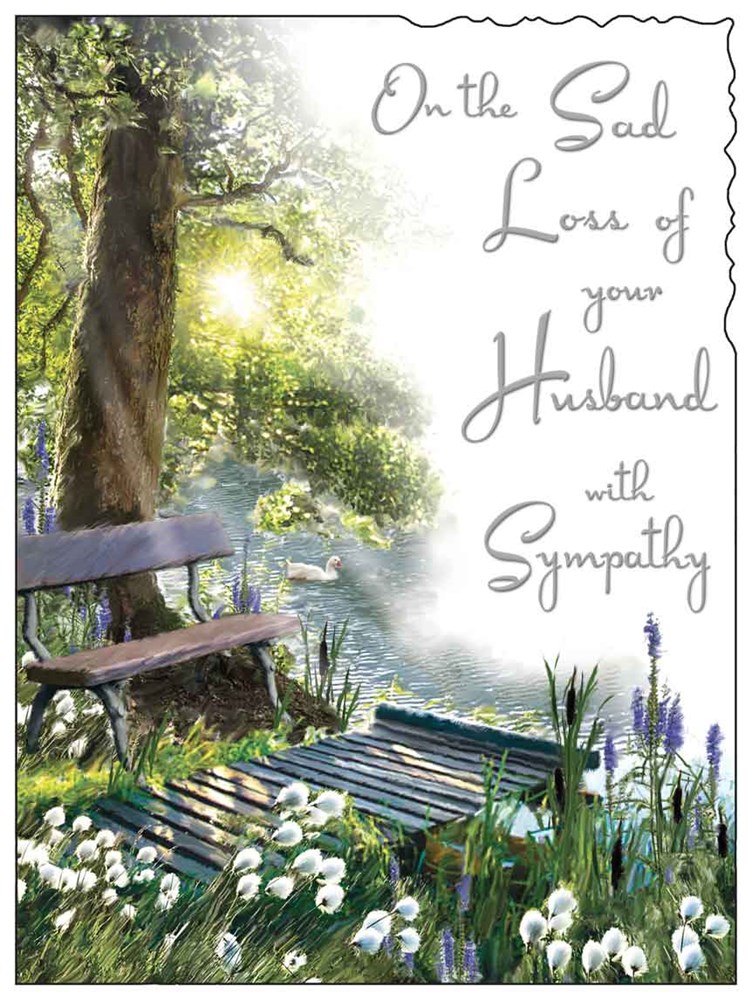 Jonny Javelin Loss Of Husband Sympathy Condolence Card & Envelope - Bench under Tree by the River