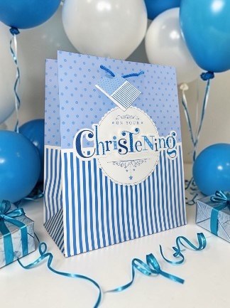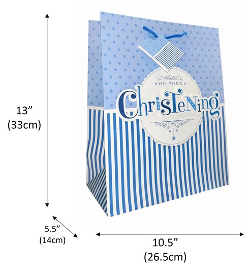 Large Christening Boy Gift Bag With Rope Handle and Attached Gift Tag