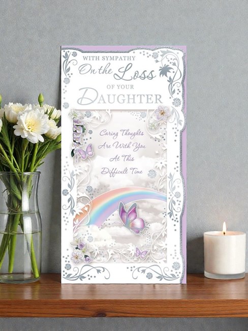On the front the card reads: With Sympathy On The Loss Of Your Daughter Caring thoughts are with you at this difficult time