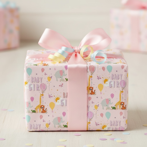 1 Sheet Of Baby Girl Wrapping Paper & 1 Matching Gift Tag