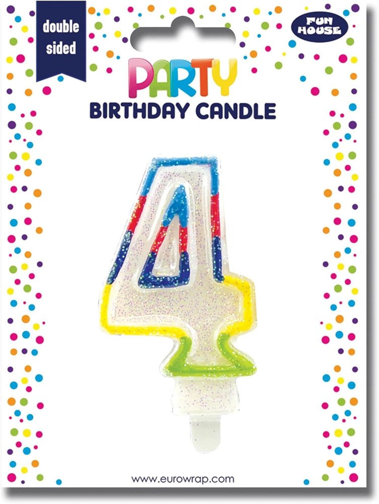 Number 4 Multicoloured Double Sided Glitter Birthday Party Candle