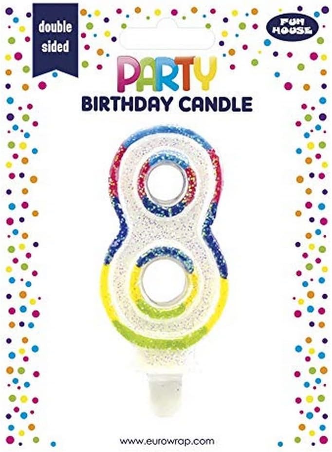 Number 8 Multicoloured Double Sided Glitter Birthday Party Candle