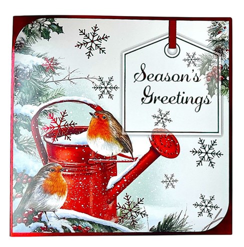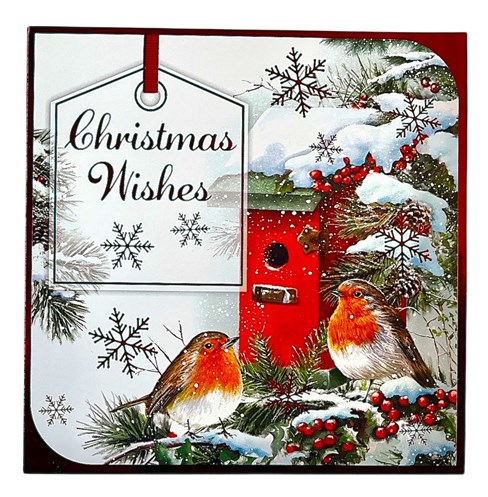 Pack of 12 Scenic Square Christmas Cards - Robins and Holly with Red Foil