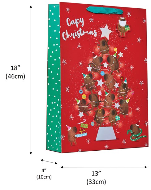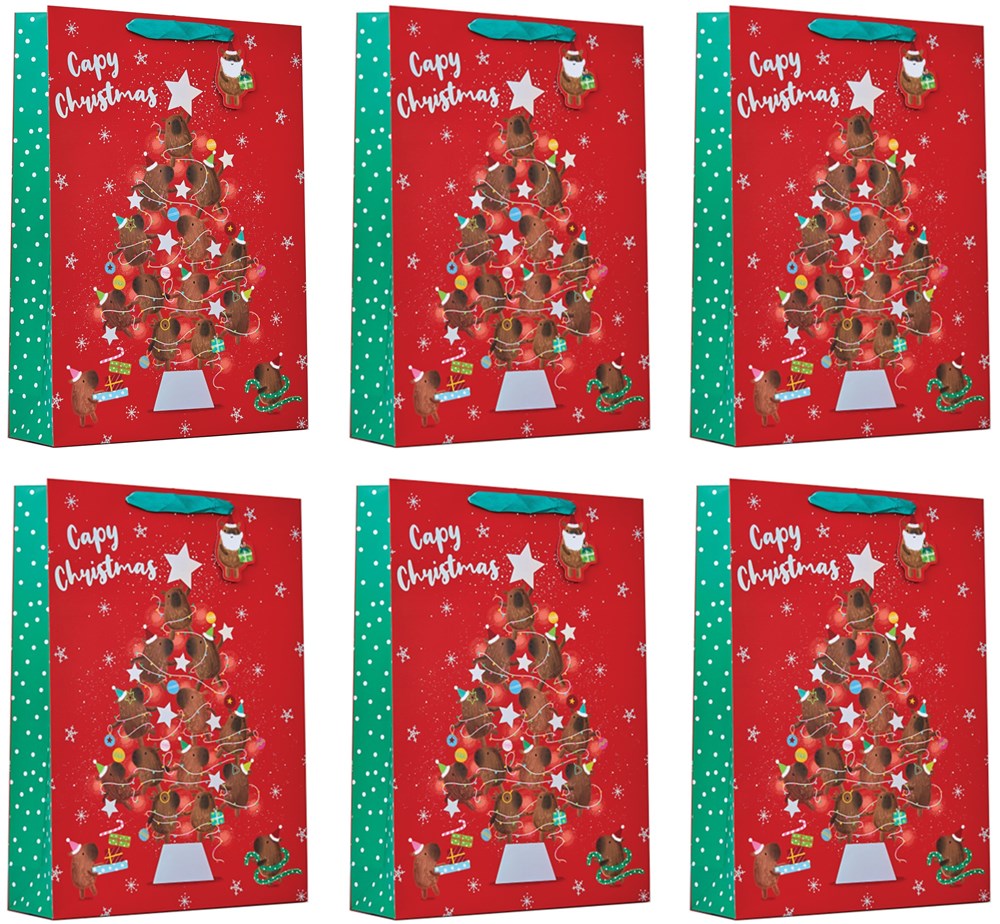 Pack of 6 Extra Large Christmas Gift Bags - Capy Xmas Tree Silver Foil 18x13"