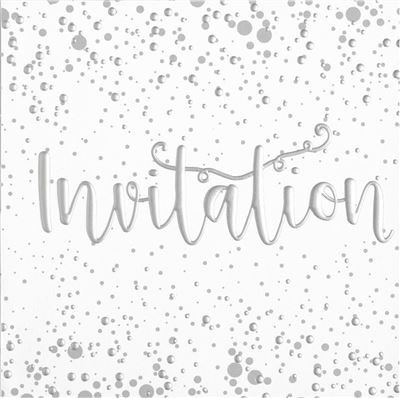 Pack 0f 6 Open Party Card Invitations With Envelopes - Silver Foiled Writing & Spots