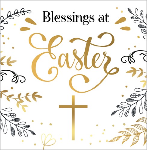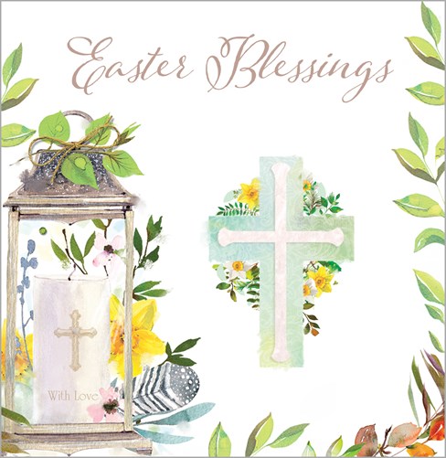 On the front reads: Easter Blessings & inside the verse reads: Easter Wishes