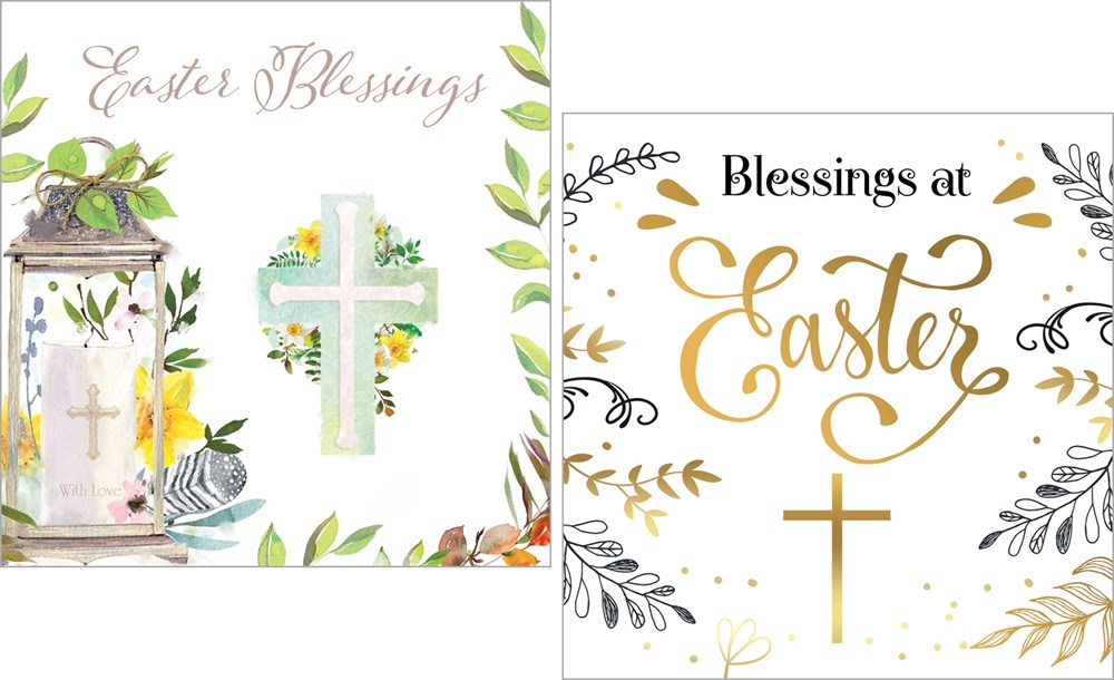 Pack of 8 Religious Blessings Easter Cards 2 Designs - Floral Black Gold Cross
