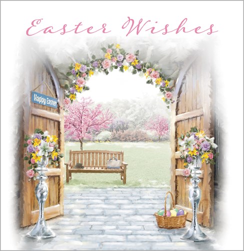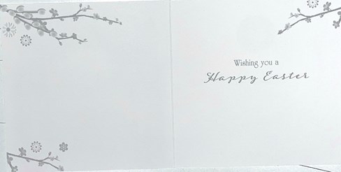 On the front reads: Easter Wishes & inside the verse reads: Wishing you a Happy Easter