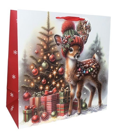 Set Of 2 Square Midi Jumbo Christmas Gift Bags With Ribbon Handles And Attached Gifts Tags