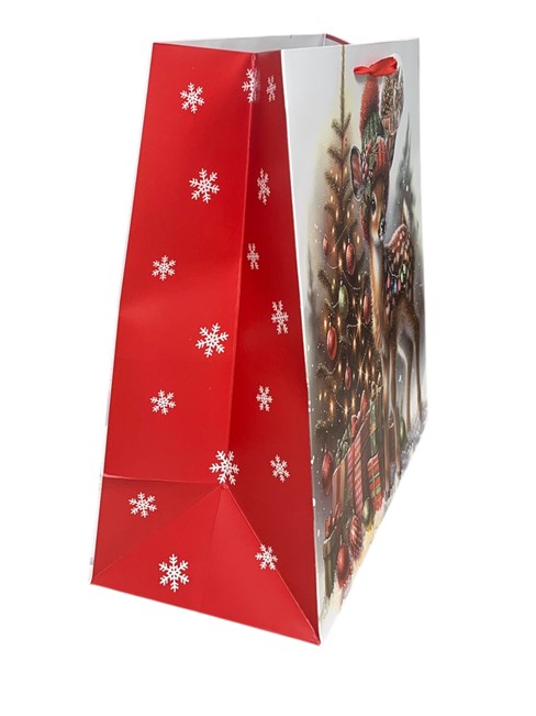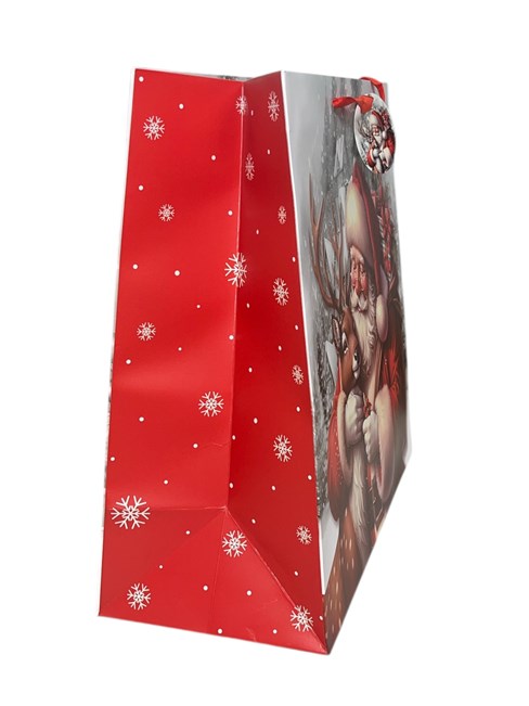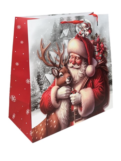 Set of 2 Midi Jumbo Christmas Gift Bags Ribbon Handle Tag - Santa & Reindeer