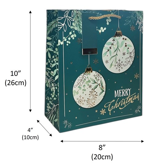 Set of 4 Medium Christmas Giftbags with Rope or Ribbon handle & Attached Tags and Glitter or Foil Finish