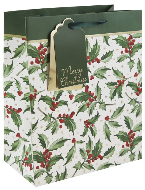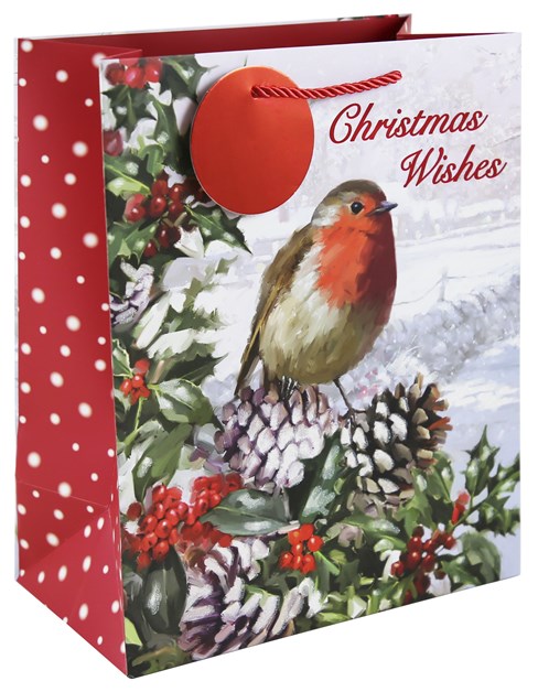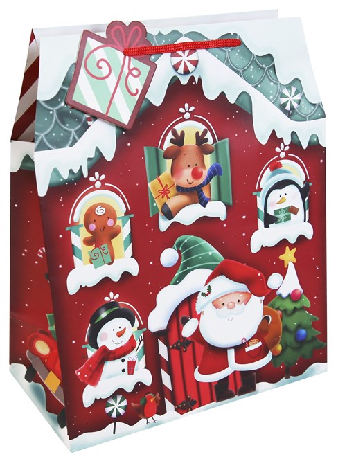 Set of 6 Christmas Gift Bags with Handle & Tag - Mixed Cute Traditional Designs
