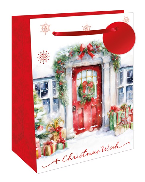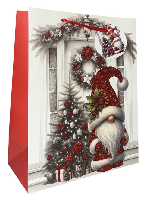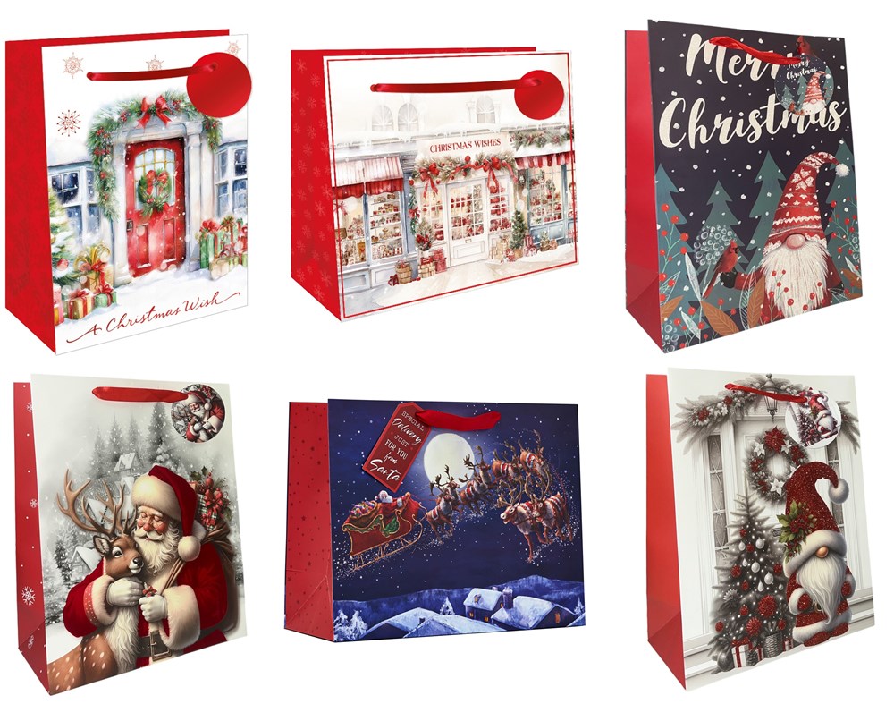 Set of 6 Large Christmas Gift Bags with Ribbon Handle & Tag Mixed Designs 13x10