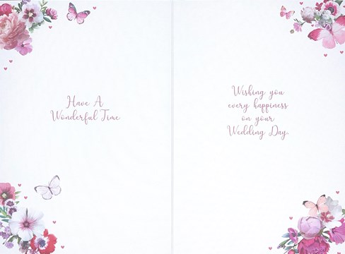 & inside is printed with the same design and reads: Wishing you every happiness on your Wedding Day