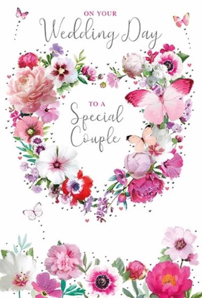 Wedding Day Card - Special Couple Flower & Butterfly Heart with Foil 7.75x5.25"