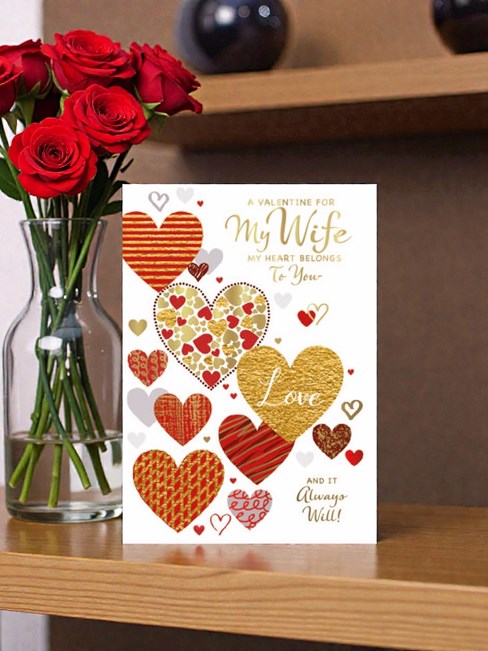 Wife Valentine's Day Card - Red and Gold Foil Hearts