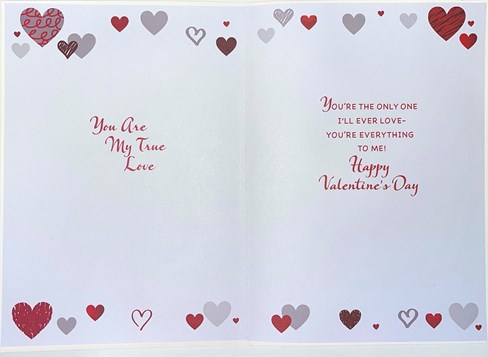 & inside has insert printed with the same design and reads: You are My true Love ~ You're the only one I'll ever love ~ You're everything to me! Happy Valentines' Day
