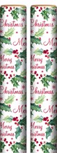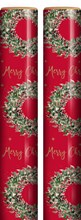 8m (2 x 4m) Traditional Christmas Gift Wrapping Paper - Red with Holly Wreaths...